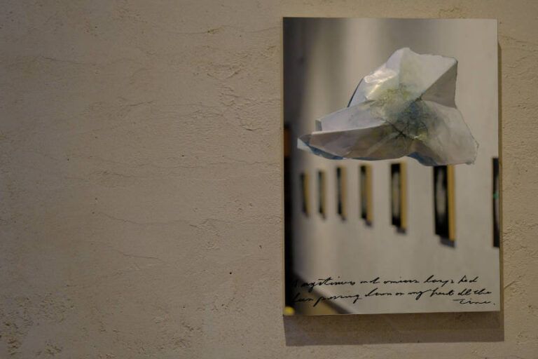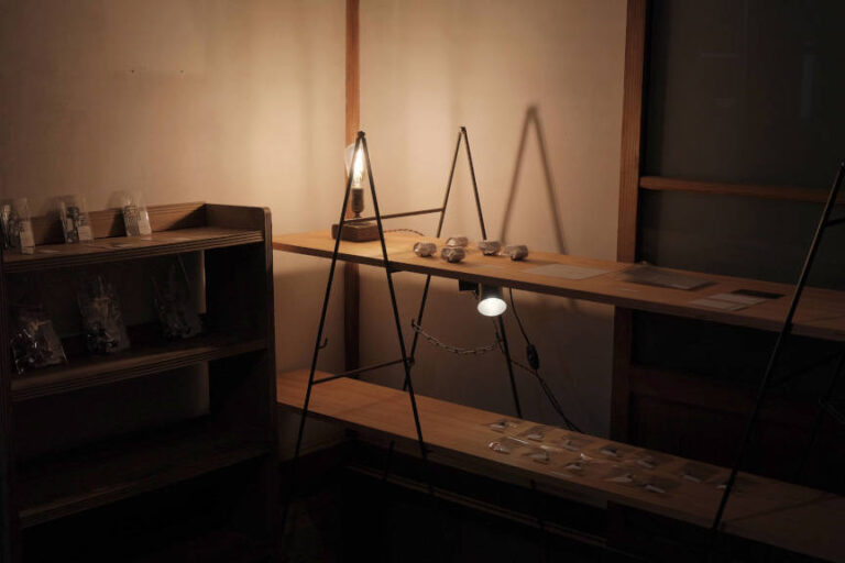 展示会「十一月の山の風のなかに」は、はりいしゃの主に3箇所の空間で作品展示を行いました。更にギャラリー手前の土間ではグッズ販売が行われ、母屋ではワークショップが、キッチンでは「モクテルバー」が開催されていました。
