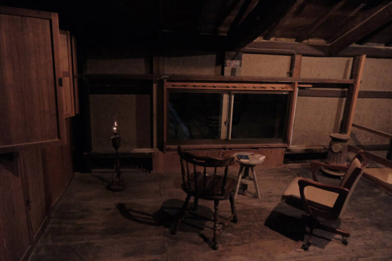 山田さん自ら蔵のスペースの最終仕上げにも関わってくださり、はりいしゃ始まって以来の土壁の蔵の展示スペースが生まれました。題材となった二つの文学世界が描かれた同時代へタイムトリップしたかのような錯覚さえ味わうことのできる、非日常。薄暗がりに灯るランプの美しい光の元、山田さんの作品世界に心静かに向き合える空間となりました。